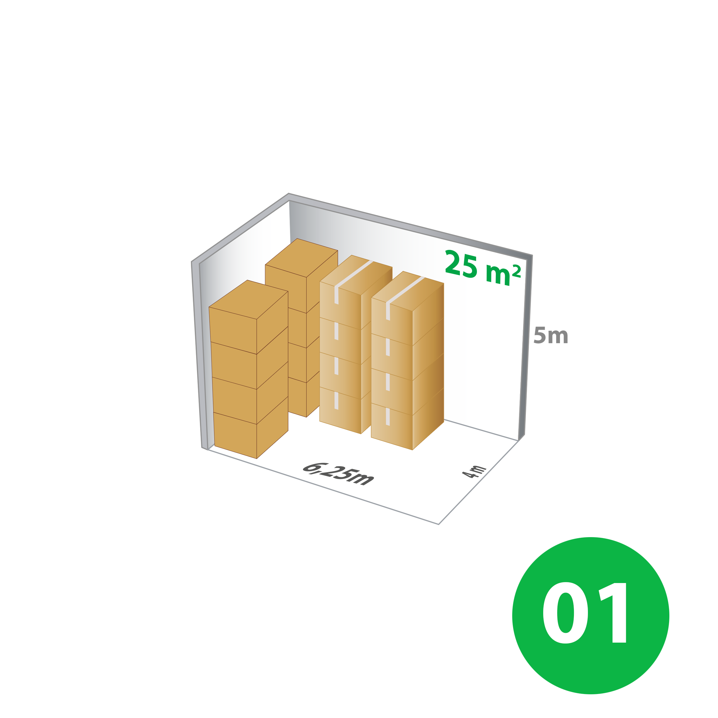 Un box de 6,25m sur 4m avec une hauteur de 5m.