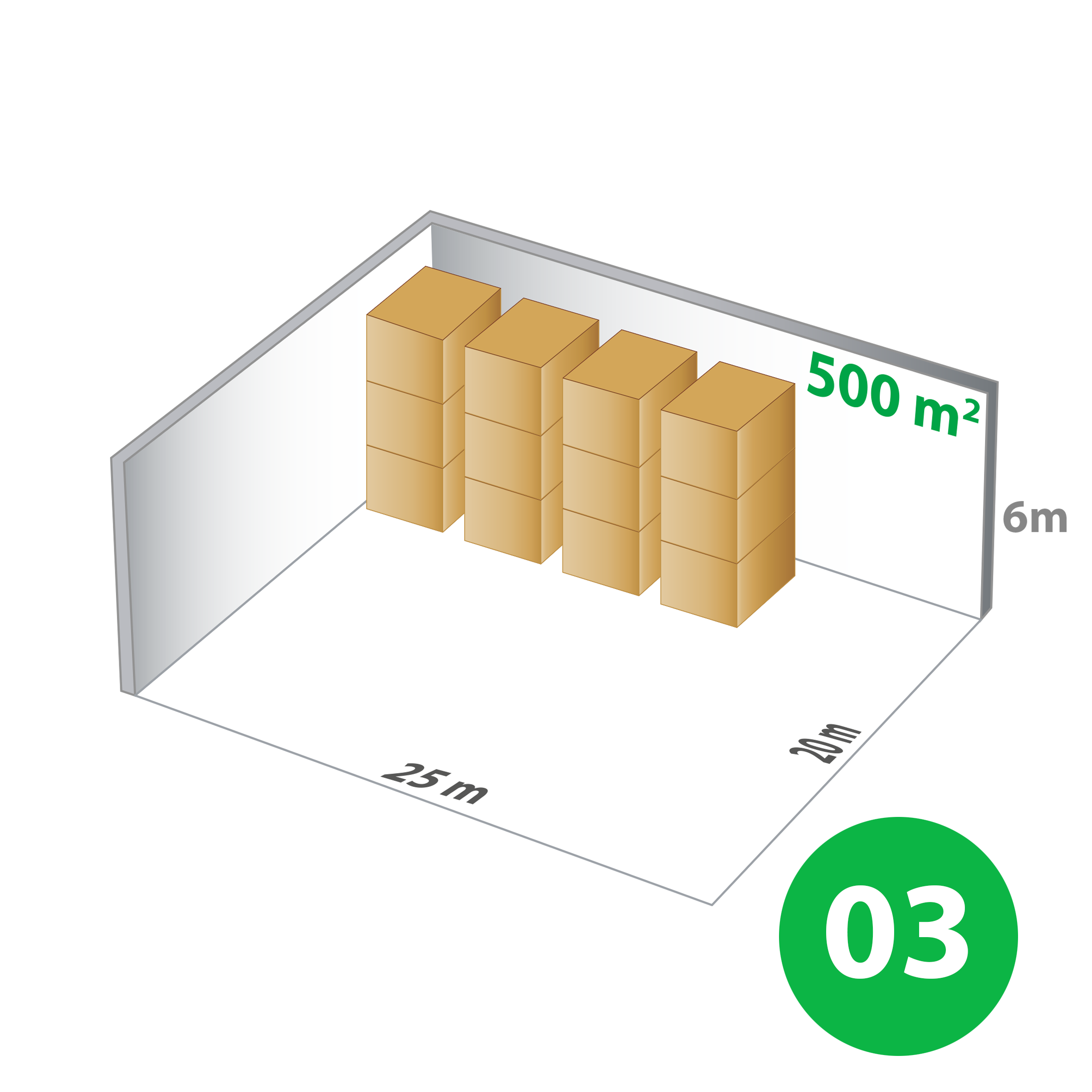 Un box de 25m sur 20m avec une hauteur de 5m.