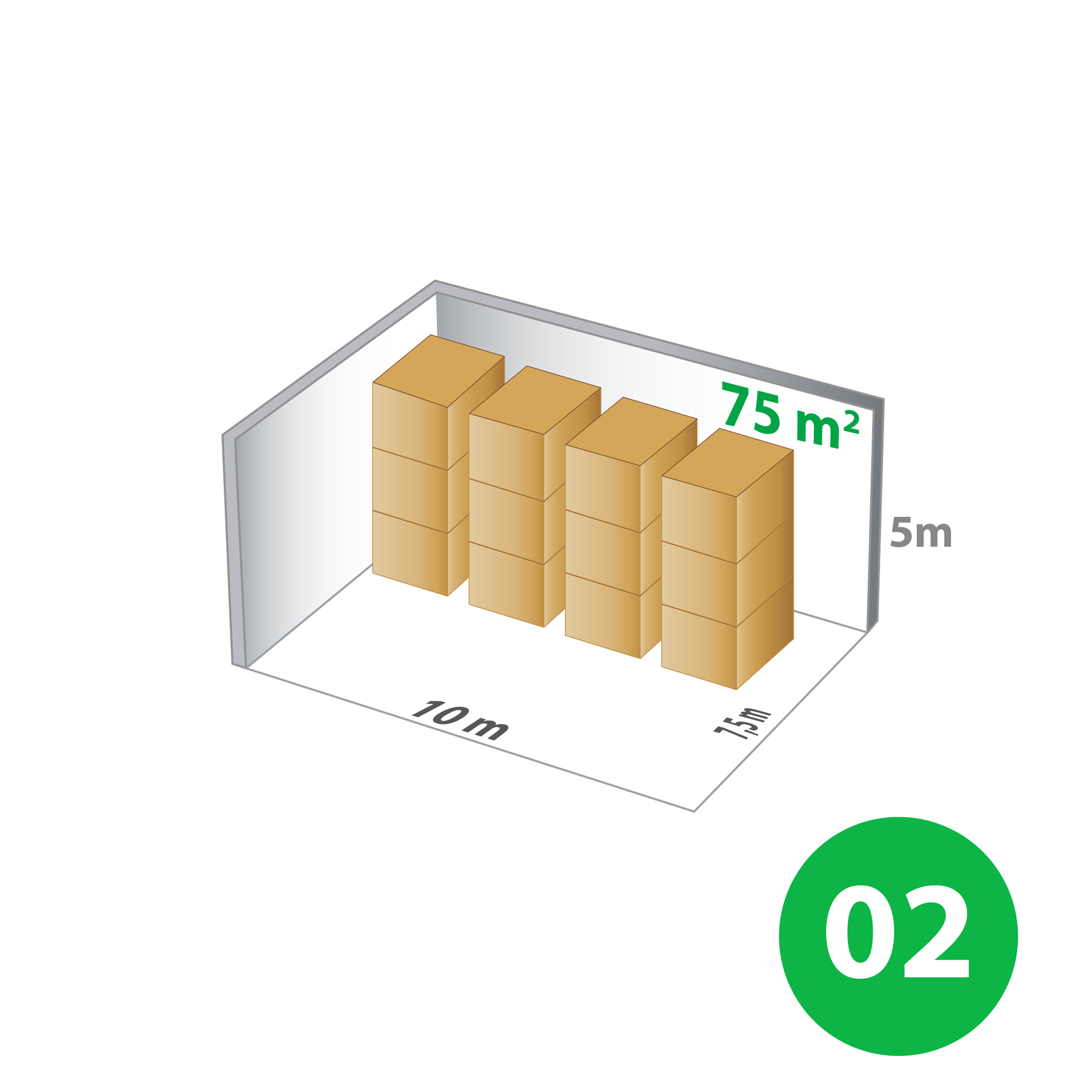 Un box de 10m sur 7,5m avec une hauteur de 5m.